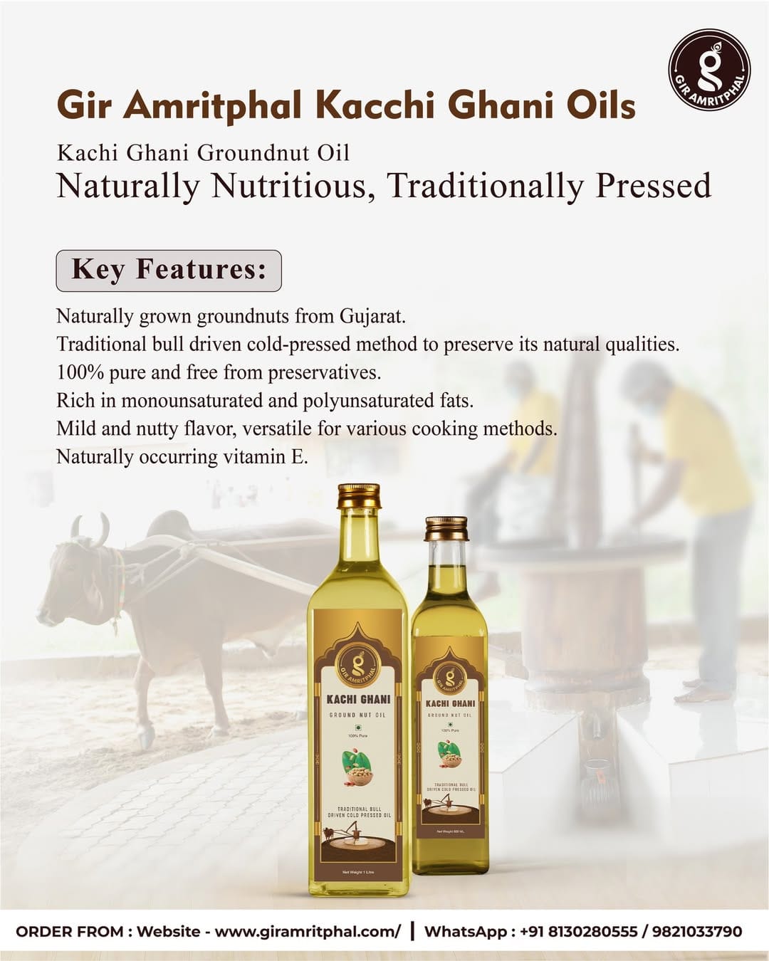 Wood Pressed Oil ka light aur easily digestible lagta hai. Aroma strong aur natural lagta hai. Cooking healthy feel hoti hai.